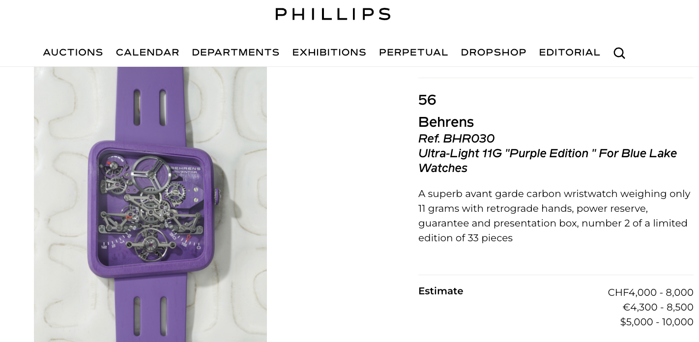 Our exclusive BEHRENS 11G Purple Carbon is currently in Auctions at Phillips for the Geneva Sessions Fall 2025.