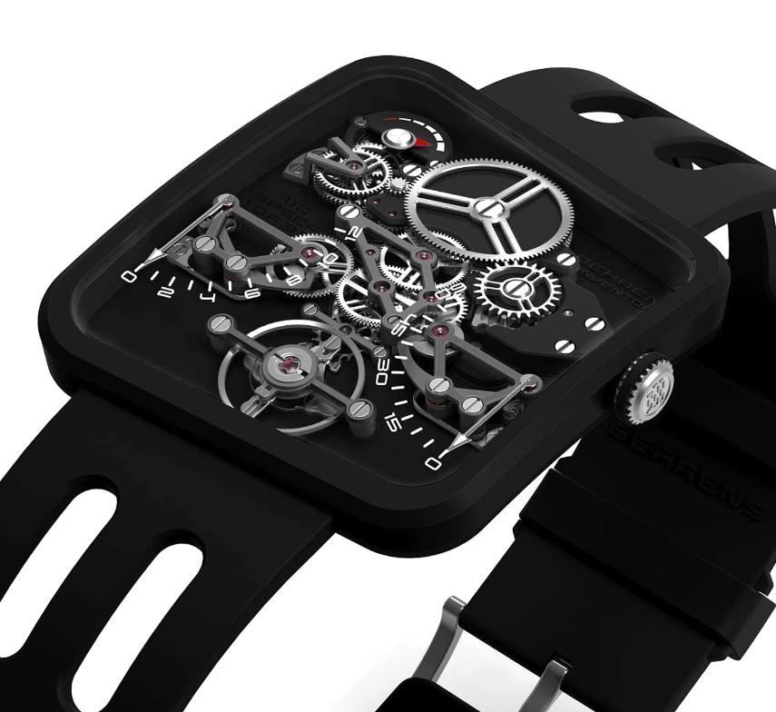 The BEHRENS model "11G" is a limited edition wristwatch crafted from carbon fiber, featuring a manual wind movement. This exclusive timepiece, limited to only 33 pieces, represents the pinnacle of BEHRENS' craftsmanship and innovation, breaking through traditional weight constraints while incorporating a sleek, modern design.