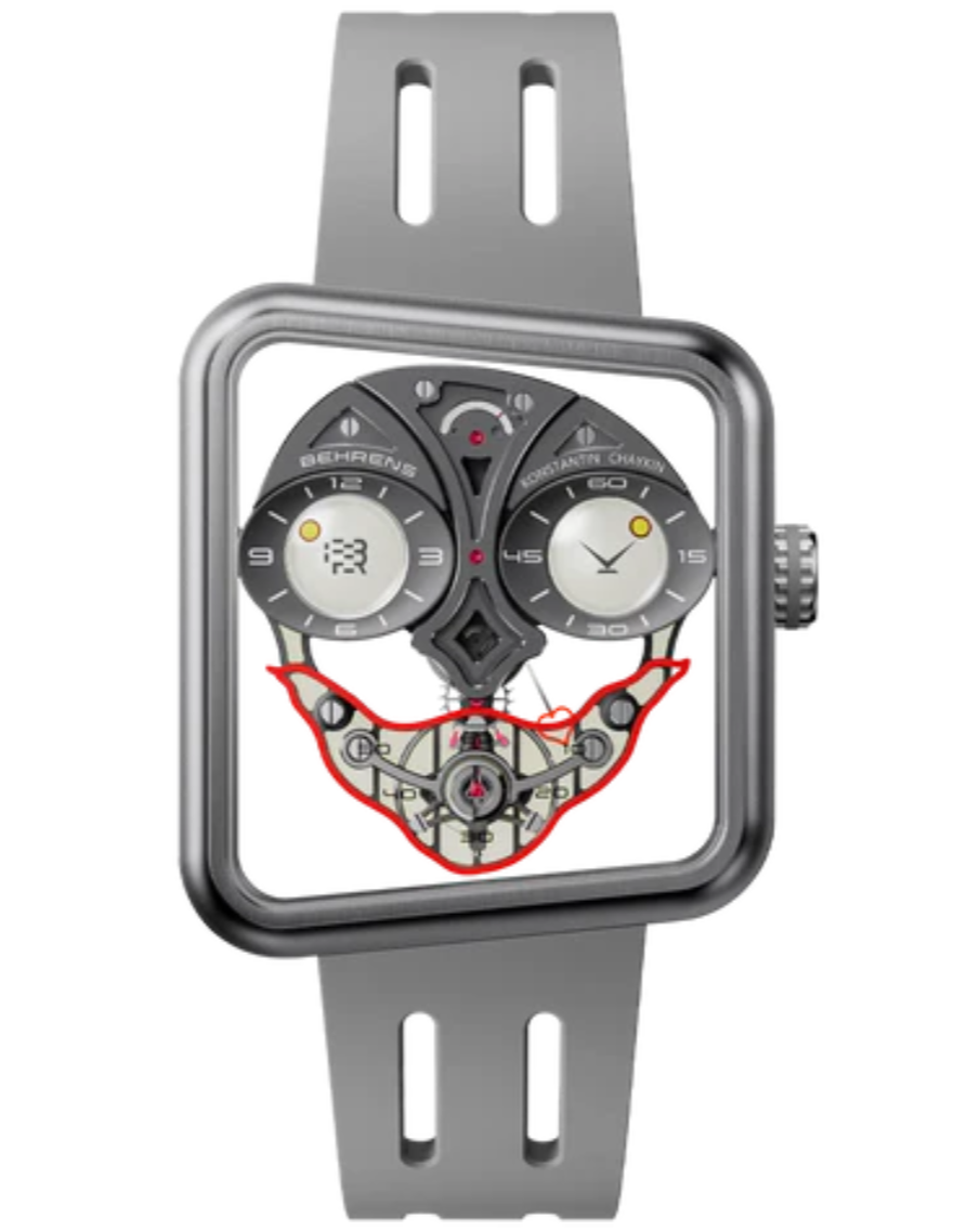 Crafted in lightweight Grade 5 titanium, this Ace of Hearts edition celebrates three years of collaboration between Behrens and Konstantin Chaykin with a utilitarian, aerospace-inspired twist. The matte grey case enhances the mechanical aesthetic, offering a more understated interpretation of the Joker theme, while retaining the expressive dial, red heart seconds hand, and playful spirit of the original.