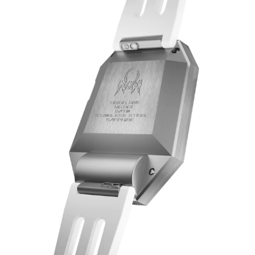 The inspiration of “Orion One” automatic wristwatch was based on an imagination of the Mothership that the alien would use for traveling to Earth. From which we have designed from scratch, the “Orion One” wristwatch based on this sci-fi and mysterious Mothership appearance. The entire case has up to 40 facets, shaped and polished through a series number of complex processes. At 6:00 position is the twin rollers time display system in ‘Hours & Minutes’, the rollers numerous are made in raised 3D style (with luminous) to offer a touch of depth and to increase the readability of the time driven by a series of unique pinion gearing mechanisms. In the center of the dial is the small round second dial with raised seconds’ hand that serves as the “Radar” of the ” Mothership”. In addition, the case back of the watch is engraved with the outline shape of this Alien sculpture.
