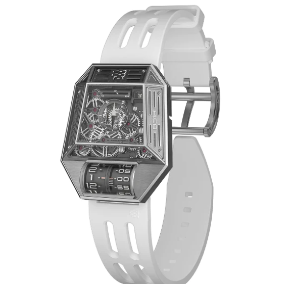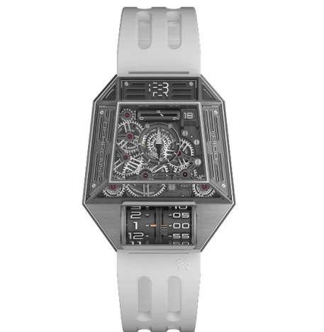 The inspiration behind "Orion One" stems from the imagined Mothership that aliens would use for interstellar travel to Earth. BEHRENS has meticulously crafted this timepiece to reflect the sci-fi and mysterious appearance of such a vessel. The case, boasting up to 40 facets, is shaped and polished through complex processes. Key features include a twin rollers time display system at the 6:00 position, a center small seconds dial resembling the "Radar" of the Mothership, and an engraved Alien sculpture outline on the case back.